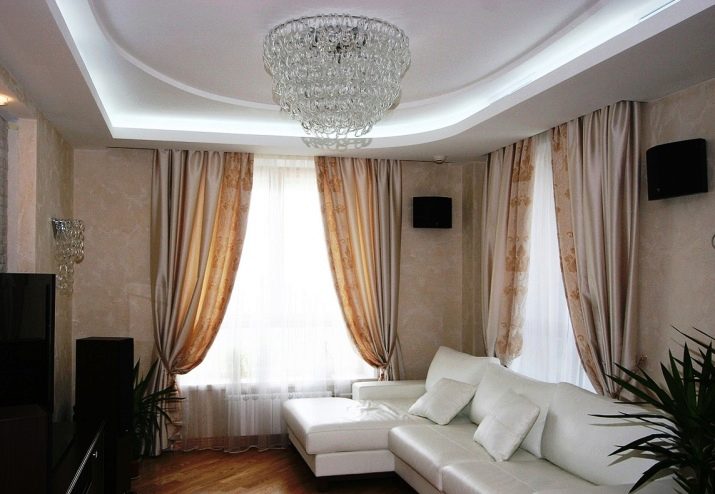 A living room with two windows makes it possible to show imagination in the interior. Nearby zones to the openings can be formed by symmetry or by mirror type. In no case do not pick up different textiles for window decoration. Dark curtains made of heavy fabrics can also be considered a bad idea. An excellent solution - curtains to match upholstered furniture. Consider the following guidelines when decorating a living room with two windows:
