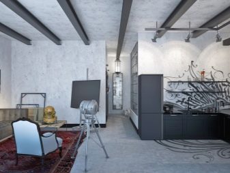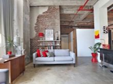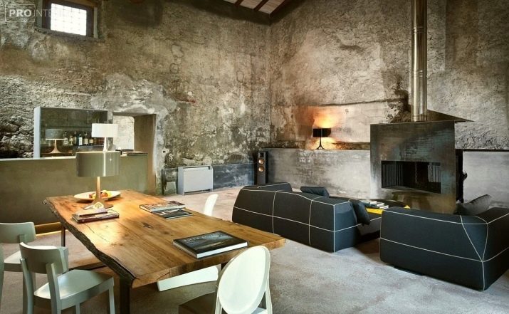 Here, it is possible to combine the old with the actual, for example, the presence of the latest technology and expensive furniture on the background of rough concrete or unplastered walls.