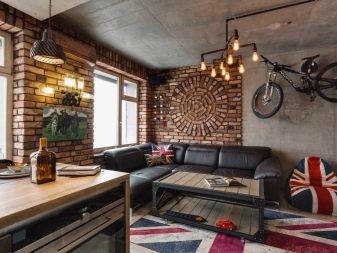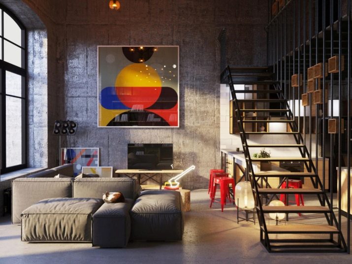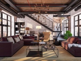 Loft style living room is original in its own way. The main motto of the arrangement is "the creation of the home of a representative of Bohemia in an industrial facility." Comfort should be limited to a minimum of decoration, but it is extremely important that the interior of the room: