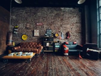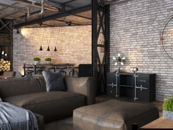 It is important to create an industrial setting in the hall, the background of which is created by just such lining options.