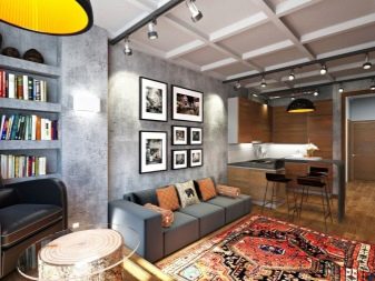 - The embodiment of the loft style in a small space with its zoning through furniture.