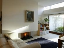 This is how an exemplary Korean living room might look. Very light color prevails, one wall, in general, is framed in pure white. The plank floor and small paintings on the walls add authenticity. For the same purpose use mats and pillows. Designers took care of the maximum natural light.