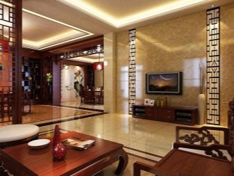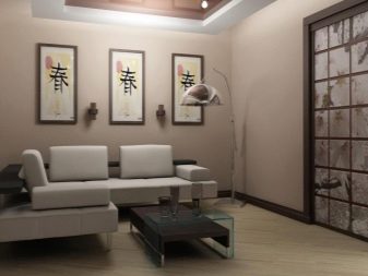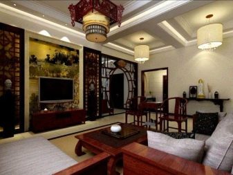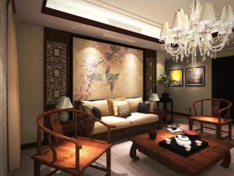 The Chinese hall differs from the Arabic in less splendor, but with a greater emphasis on philosophy and worldview.This solution is suitable for those who want to express their inner world in the living room. Ultramodern technological solutions and materials associated with them are categorically unacceptable. But paper wallpaper and decorative plaster with painting are fully consistent with the canon. Important: individual drawings are deeply symbolic, and the choice of their subjects should be approached responsibly.