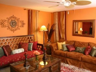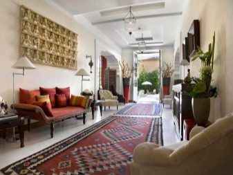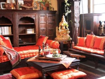 The decoration of the living room in the Indian style is quite rare. This version of ethnic design has repeatedly changed and adjusted. In the past, it was simple and functional, but today the right Indian living room must be sophisticated and luxurious. Characteristic features will be:
