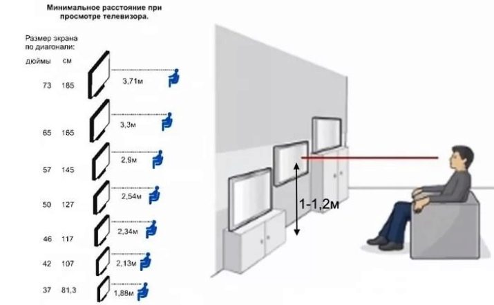These sizes are pretty arbitrary. For a more accurate result, it is necessary to take into account all the placement parameters of the TV, and use simple calculations. This will be discussed later.