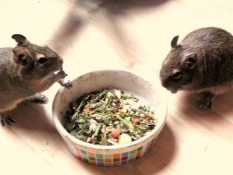 Many owners do not trust the feed produced by different manufacturers, so make a list of products for their pets on their own. When compiling a diet, it is imperative to take into account that degu proteins are rodents. Accordingly, foods such as regular oatmeal, various cereal products, such as buckwheat or peas, should also be included in the feed. In addition, you can add a little crushed crackers.