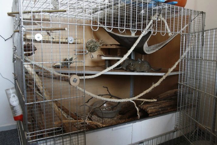 Before the appearance of the Chilean squirrel in the house, it is necessary to take care of a comfortable and durable home for her. It can be a metal cage or a glass aquarium of a minimum size of 75x60 cm with a height of 50–70 cm. The floor should be covered with sand, paper or rags. To absorb waste, it is important not to use coarse cat-like filler, granules, hay. Fillers can injure the legs of degus, and they eat hay, sand, absorbing diaper, will be suitable for the toilet.