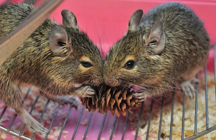 The only degu in the house will require attention and affection from the owner, who will become a real friend. A couple of Chilean squirrels will not be so bored, they will communicate with each other, delighting the eyes of others with their funny behavior and games. Shrub rats are very shy and react nervously to a sharp noise or movement, they need to be tamed to their hands for a long time and carefully. This must be taken into account in their maintenance, as well as to warn about their characteristics of children and guests who come to the house.