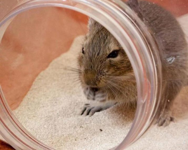 Degas love to take “sand baths”, it is better to put a sand pool for these procedures temporarily for the sake of cleanliness around. They place the house degu away from drafts and heating appliances, trying to avoid direct sunlight. Animals do not like noise, so the places near the TV and radio are not suitable. The kitchen is not the best room for a Chilean squirrel that does not tolerate strong odors and high temperatures. Mandatory house cleaning degu - duty weekly and general once every 1-2 months.