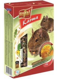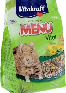 Standard feed mixtures can be diluted with dried vegetable slices, bread or home-made crackers. Bean feeding is also allowed. It should be taken into account that not domestic but foreign dry feeds are better suited for degu.