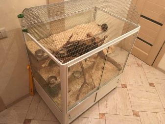 Sometimes glass terrariums of the required volume are used, in which a grate is installed. Litter is made: