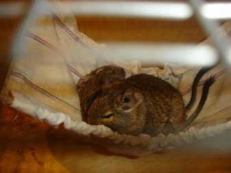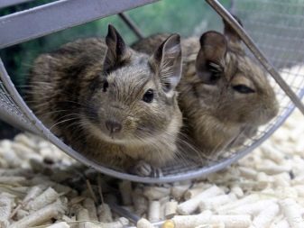 Hay or shavings are placed on the floor. Typically, houses are designed for one degu. But you need to know that these animals tend to hug each other in a dream, thereby warming themselves.