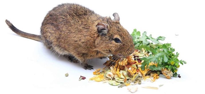 Eating a rodent in a city apartment or a private house is not too difficult. But you need to pay attention to key rules so that there are no errors. Since the species in nature is completely herbivorous, you can not use anything other than plant products. And even among them, sugar-saturated fruits, vegetables, or grassy stems are unacceptable. Diabetes is one of the biggest problems for degus.