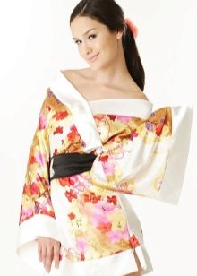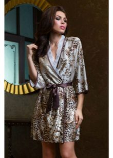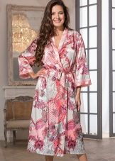 The kimono model is popular when the dressing gown has long sleeves expanding towards the end, and also preferably a wide belt. Most often, oriental prints are chosen for them to give greater authenticity.