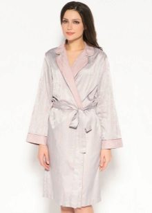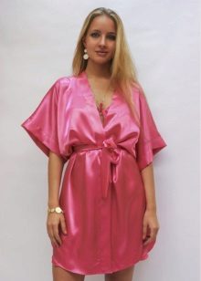 The very style of the dressing gown suggests that the product is made with a smell, and it is worn with a belt, which applies to home satin options.
