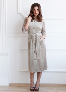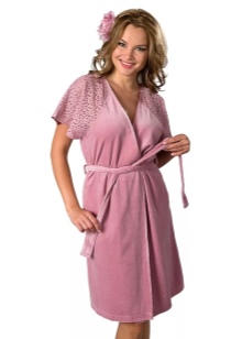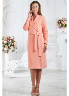 A wrap dressing gown, complemented by a belt, appealed to many women. It is convenient to put on, warm, practical, as there is no need to worry about buttons coming off. In addition, such an accessory as a belt is designed to emphasize the waist of its owner.