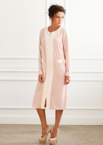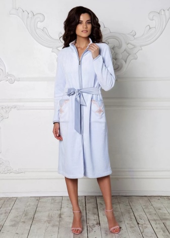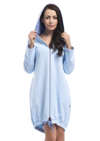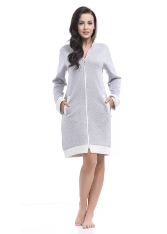 Women's bikini dressing gowns with zippers practically repeat the mission of button-down robes, but they are an improved option, since they fasten and unfasten more quickly. With all its simplicity and modesty, this garment will be able to endow its owner with elegance and femininity.