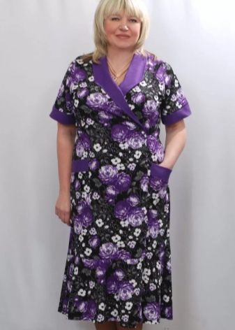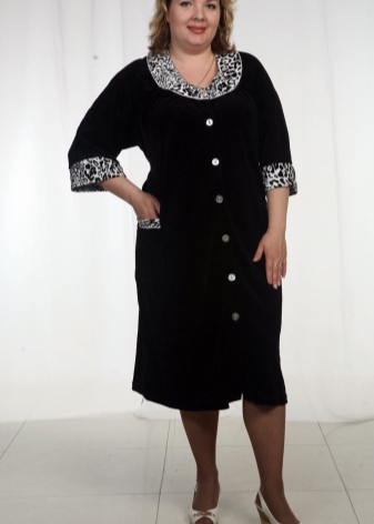 Many puffy ladies are comfortable staying in a bathrobe all day long because of freedom of movement, ease, convenience. Models of loose fit, with a smell, with a cut of a sleeve “bat”, with a shawl collar emphasizing the neckline line are perfect for them.