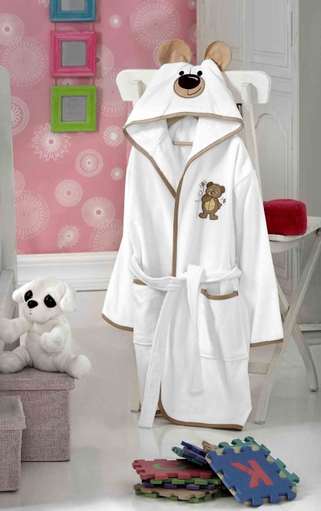 A warm flannelette dressing gown of soft, pleasant colors is wonderful for a girl as clothing for home, it also absorbs moisture well and does not allow to freeze after taking a bath. A cozy bikini dressing gown will gently and gently wrap and soothe your child.
