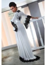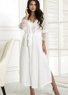 Beautiful white bathrobes can be decorated with a variety of decorative elements. You can look unsurpassed even at home. Designers are increasingly offering loose silhouettes without hard clasps. The trend is white bathrobes with a smell or zipper. Looks charming model with a lowered shoulder line.