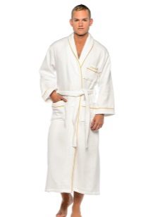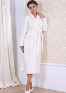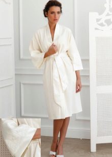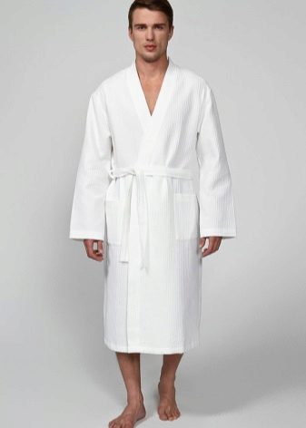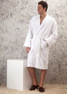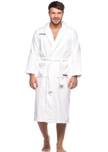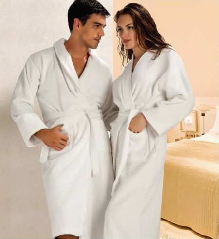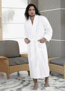 - For bathing purposes, it is better to buy a dressing gown with a short pile. For the winter season, a white robe with a pancake pile is ideal.