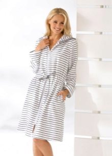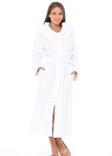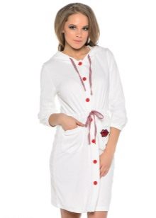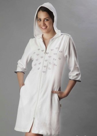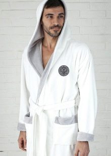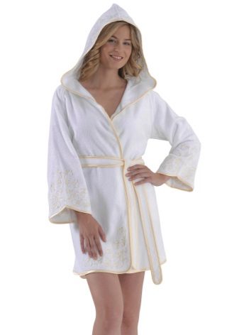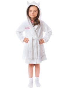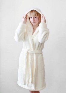 White bathrobes with a hood are in great demand especially in the winter. This may be a long-pile terry product. The hood can act as a decor. Today, white dressing gowns with ears are often found. They look funny and cute.