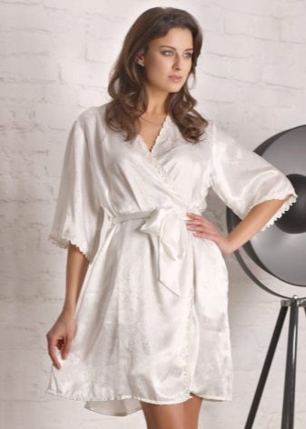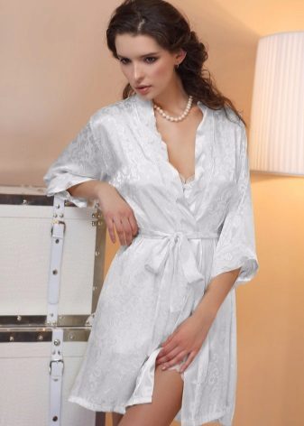 The fair sex simply adores silk clothes, especially when it comes to underwear or underwear. The white silk robe looks luxurious and unforgettable. Silk is light and airy. It is very pleasant to the touch, and is able to acquire body temperature. Such a bathrobe will be a great solution for the hot season.