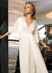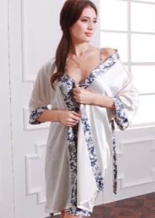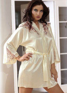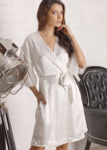 As for men, they are always delighted with such outfits. White silk dressing gown has one indisputable advantage - it with the help of its flowing style hides figure flaws, and a belt tied at the waist and having numerous folds emphasizes its harmony and creates a very feminine silhouette.