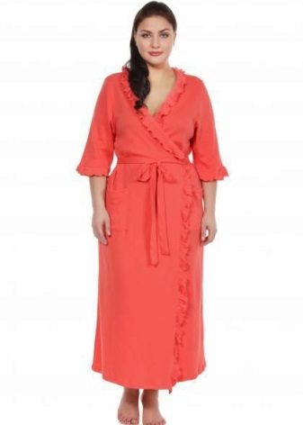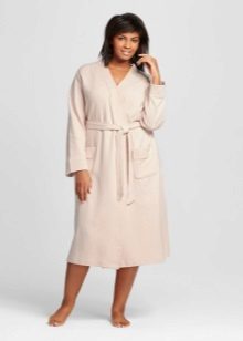 Long bathrobes will look good on girls with full legs. They perfectly hide the fullness of the hips and allow you to feel confident and comfortable.