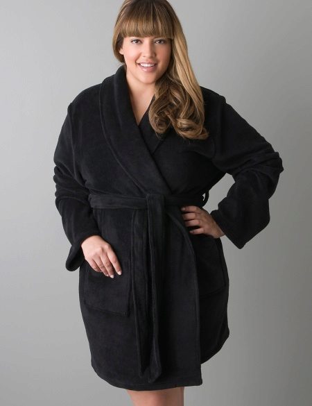 A dressing gown with a large collar for overweight women looks very stylish. Typically, a large collar is an indispensable attribute of male models, so this makes the image masculinity and light brutality. Independent, self-confident women will certainly enjoy it.