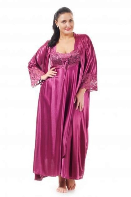 - A set consisting of a long nightgown and a purple robe is perfect for a romantic night with your beloved man. Such a kit will make you feel even more desirable and attractive.