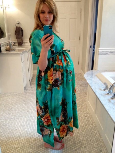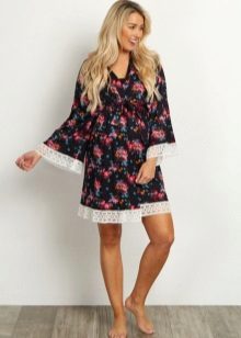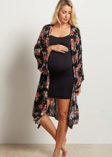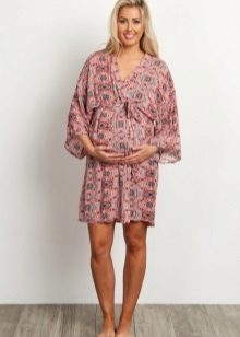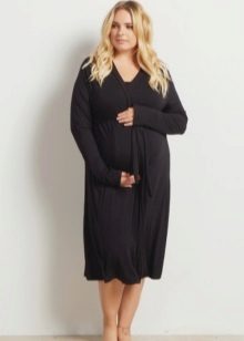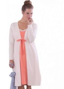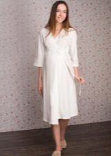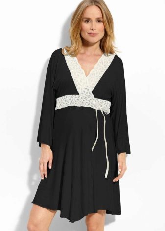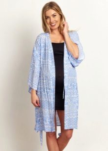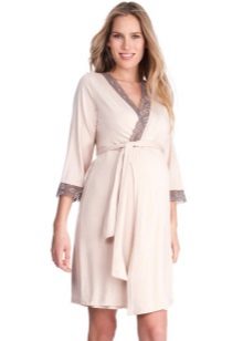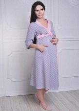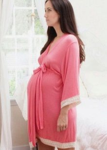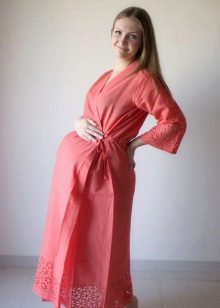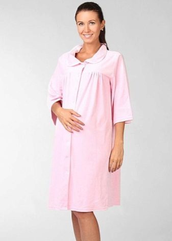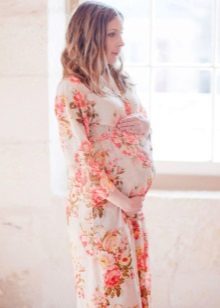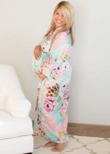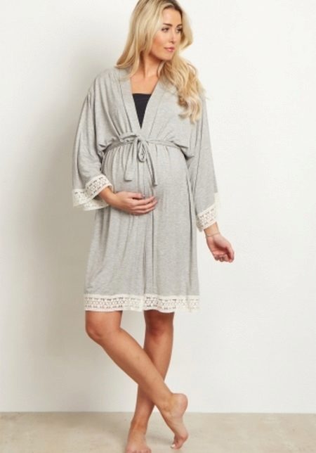As a rule, the length of the robes for pregnant women is slightly below the knees or to the ankle. Medium length is preferred. In a bathrobe of this length it will be convenient to move around the house or hospital, it is more comfortable to undergo an examination.