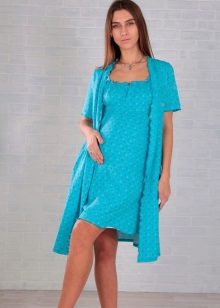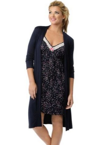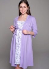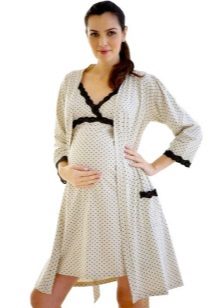 The kit is slightly different from the first option. In this, as in the previous case, you can choose the length and style of the dressing gown to your liking. The nightie is usually complemented by a smell on the chest or neat buttons that are easily detachable when feeding. It is better to choose options with a support assembly under the chest - this will beautifully shape the top of the product and give it to the owner of femininity.