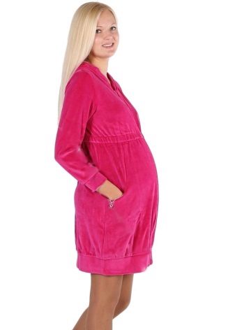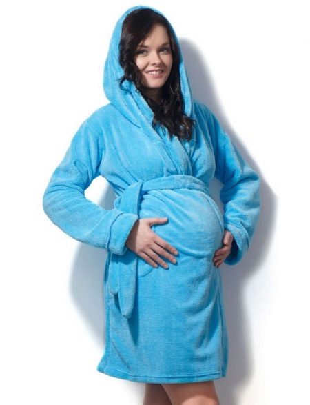 For lovers of comfort, especially in the cold season, designers offer special warm bathrobes for pregnant and lactating women. They are made of terry, velor fabric or with the addition of bamboo. These fabrics are completely natural, very soft and will not cause allergies in the child.