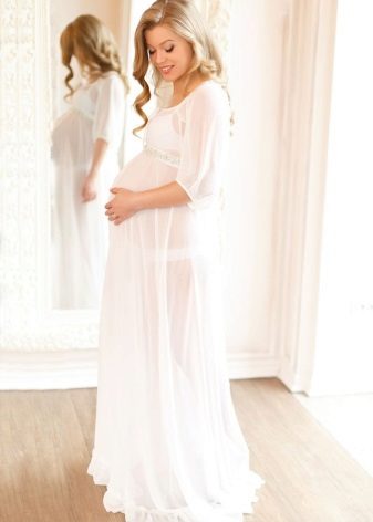 For a photo session before or after childbirth, you can choose an elegant set with the addition of lace along the neckline or with a fastener on a buttonhole. Usually, chiffon or satin is used to sew such sets, because the main emphasis is on beautiful pictures, and not on practicality.