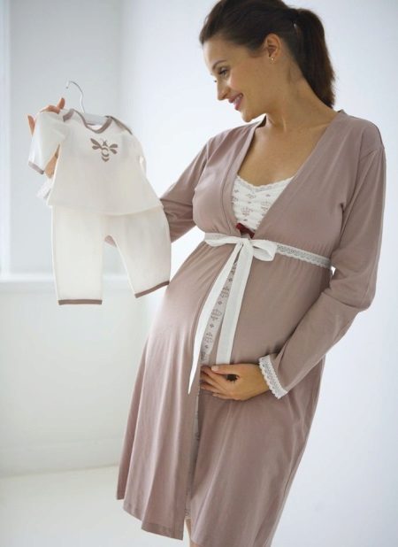 Designers offer pregnant women sets to choose from: a bathrobe with a shirt, pajamas or a nightie. Each of them has its own advantages.