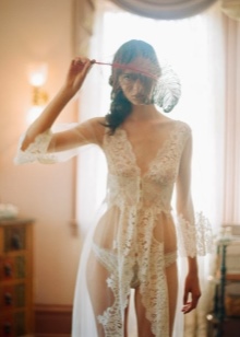 For this type of dressing gowns, a certain transparency of the fabric, a short length, and frankness of lines are just appropriate. Here, the bride can show all her imagination and choose the most daring outfit, because only a legitimate husband can see him.