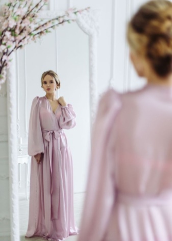For a morning robe, gentle, pastel colors, styles with a smell and a belt are like.