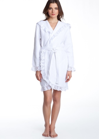 On the wedding day, the bride should look beautiful in the morning, and this requires a charming feminine robe. As a rule, robes of this kind are made of silk and cotton, decorated with lace and braid.