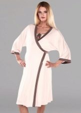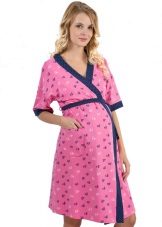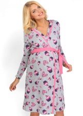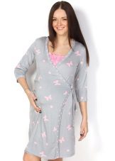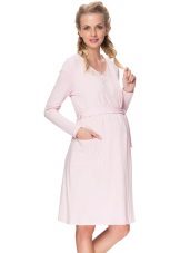 One of the most suitable styles of a dressing gown for a maternity hospital is a dressing gown with a smell on the belt or ties, a woman can wear it both in the prenatal period and after childbirth. A zipper bathrobe is also convenient, so that when feeding you do not have to spend time and effort unbuttoning the buttons. You can choose any length of the product, but the average length (just below the knee) is usually the most popular.