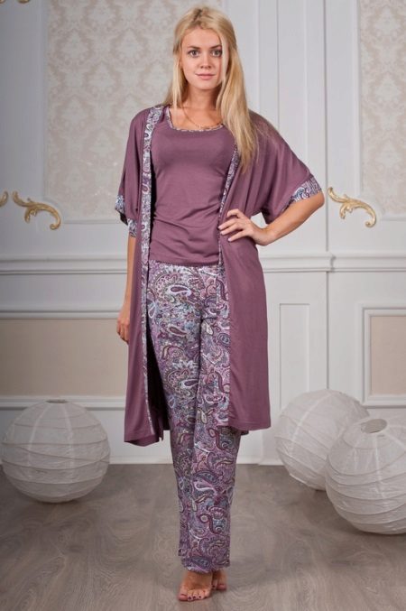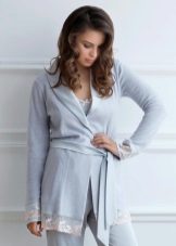 An option for women who like a bathrobe but don’t like the feeling of bare legs, no matter how long the bathrobe is. Short or long trousers with a short dressing gown or a dressing gown of medium length - this is a full-fledged home ensemble, still comfortable, but at the same time creating an interesting and not the easiest way.