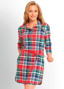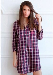 One of the most stylish and at the same time convenient options for this type of home wear, the cut of which imitates a man’s shirt. It can be fitted or oversized, with a collar or without a collar, with a polo or full-length clasp, with a long or short sleeve, in a variety of colors and prints depending on the hostess's taste and comfort ideas.Sometimes a dressing gown is so good that it is also suitable for wearing outside the home.