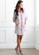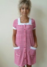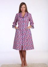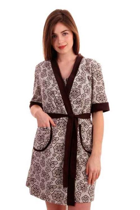 - The dressing gown can be with a smell or on a belt, on a lightning or buttons. The choice of fastener is a matter of taste.