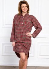 Stylish flannel checkered gown has a short length. The shirt cut model is presented on buttons, has pockets on the sides. This dressing gown has a great cut and is a great choice for home clothes.