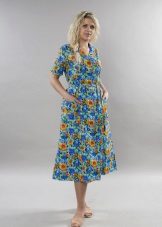 A bright robe from a flannel of a direct silhouette attracts attention with a luxurious coloring on a floral theme. The wraparound model has two side pockets and a рукав sleeve. Delicate flowers on a blue background look charming and emphasize the femininity of its owner.
