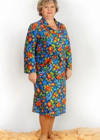 Flannel bathrobe is perfect for overweight women.The free cut allows you to pick up a large model that fits nicely on the figure and hides all its flaws. The dressing gown may be wraparound or on the belt. The choice of colors is individual.