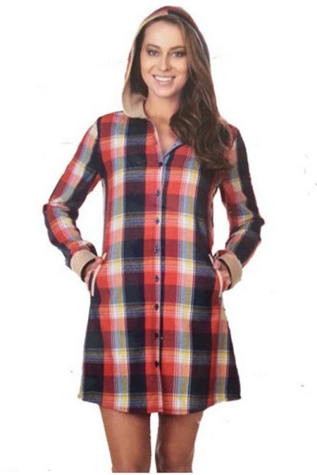 Flannel robe today is presented in different colors and decorated with original patterns. A particular attention is drawn to the variety of styles. The length of the cuff and sleeves can be different, when choosing it is worth starting from personal preferences.