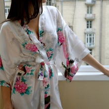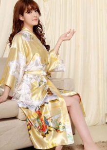 The classic decoration and decoration of the kimono dressing gown is considered a bright oriental print and natural noble fabric itself.