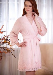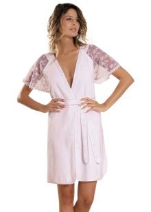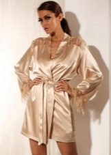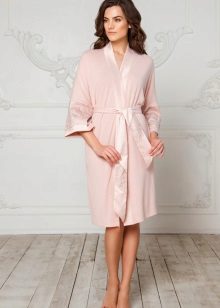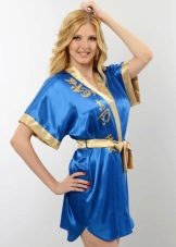 - Peignoir Kimono. Traditional Japanese motifs are manifested both in the color scheme and variations of prints, as well as in the features of the cut and the width of the sleeves - they are very loose and end with graceful frills;