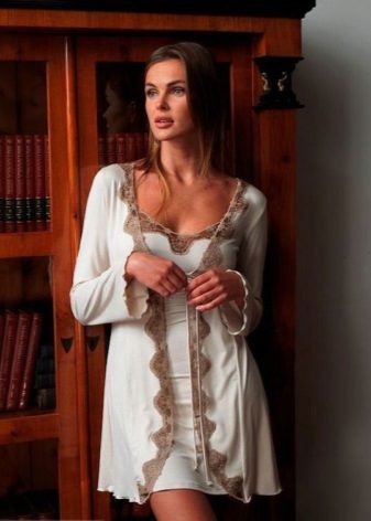 - Peignoir for sleeping. This option is characterized by a fitted cut, thin straps and a length just above the knee;